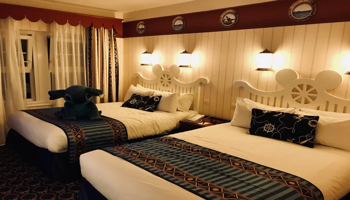 أما غرف وأجنحة الفندق؛ فهي مُصممة على طراز آرت ديكو القريب من تصاميم ديزني، وجميع الغرف بها إنترنت WiFi مجاني، وشاشات تلفاز مُسطحة، أما الغرف من الفئة الأعلى VIP؛ فهي تضم المزيد من السمات مثل إمكانية الولوج من خلالها إلى صالة خاصة للحصول على الفطور أو المشروب المفضل.